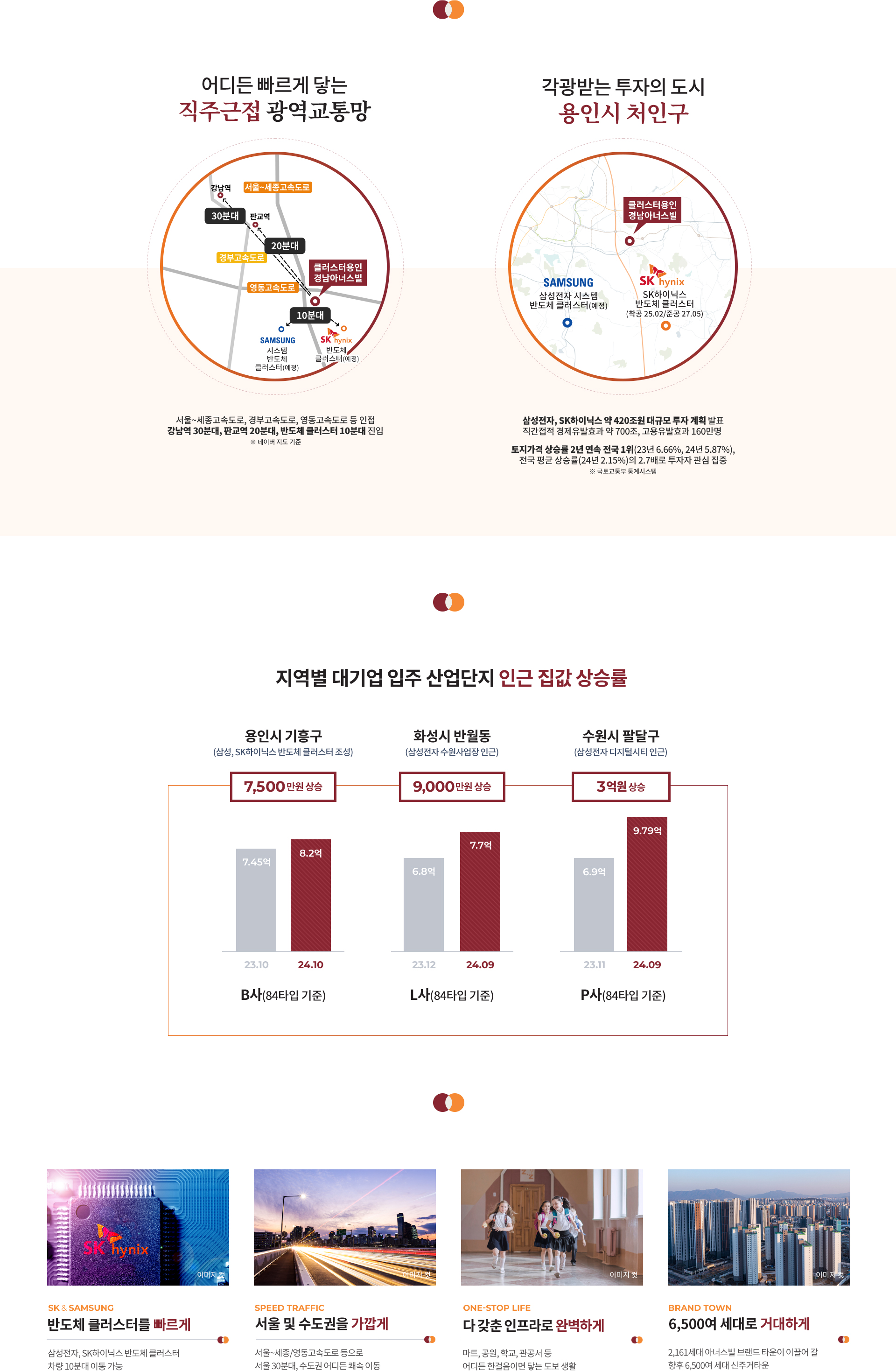 반도체 산업 육성 정책과 용인 반도체 클러스터 조성은 대규모 고용 유발과 배후 수요 확대로 이어질 전망입니다. 출퇴근 30분 권역에서 ‘새 아파트·직주근접·대단지’ 요건을 충족하는 곳은 광역 수요의 1순위가 되기 쉽습니다. 여기에 서울세종·제2경부 등 광역도로망이 맞물리면 장기 보유 관점에서도 안정적입니다. 다만 교통·산업 인프라의 세부 일정은 행정 절차에 따라 변동 가능성이 있으니, 실제 계약 전 공식 고시와 지자체 공문을 재확인하시기 바랍니다. 이러한 관점에서 클러스터용인 경남아너스빌의 수요 기반은 견조합니다.