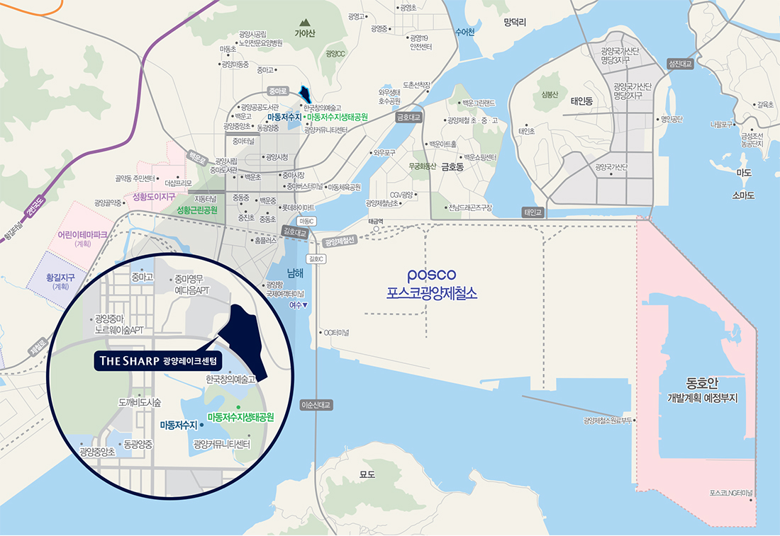 포스코 광양제철소, 광양항, 국가산단·율촌산단 등 직주 인프라가 가까워 탄탄한 임대·매매 수요가 예상됩니다. 더샵 광양레이크센텀은 이 같은 안정적 배후수요에 더해, 이차전지 소재·수소 생산라인 투자 계획과 관광 인프라 확충(이순신대교 해변관광 테마거리, 삼화섬 연계 콘텐츠 등)에서 오는 간접 수혜도 기대할 수 있습니다. 지역이 ‘산업과 관광을 동시에 키우는’ 방향으로 가고 있다는 점이 중장기 체류 인구를 늘리는 요소입니다.