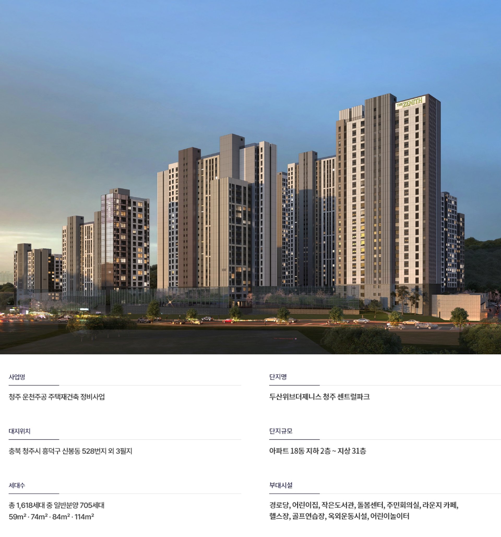 충북 아파트 두산위브더제니스 청주 센트럴파크