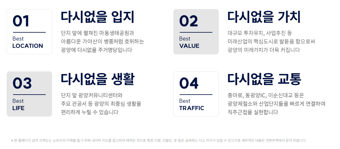 생활의 편안함, 자산의 안전성, 자연과 여가의 여유까지—더샵 광양레이크센텀은 일상에 강한 대안입니다. 실거주자에게는 ‘지금 사는 오늘’을, 투자자에게는 ‘내일의 방어력’을 선물할 단지로 판단합니다.