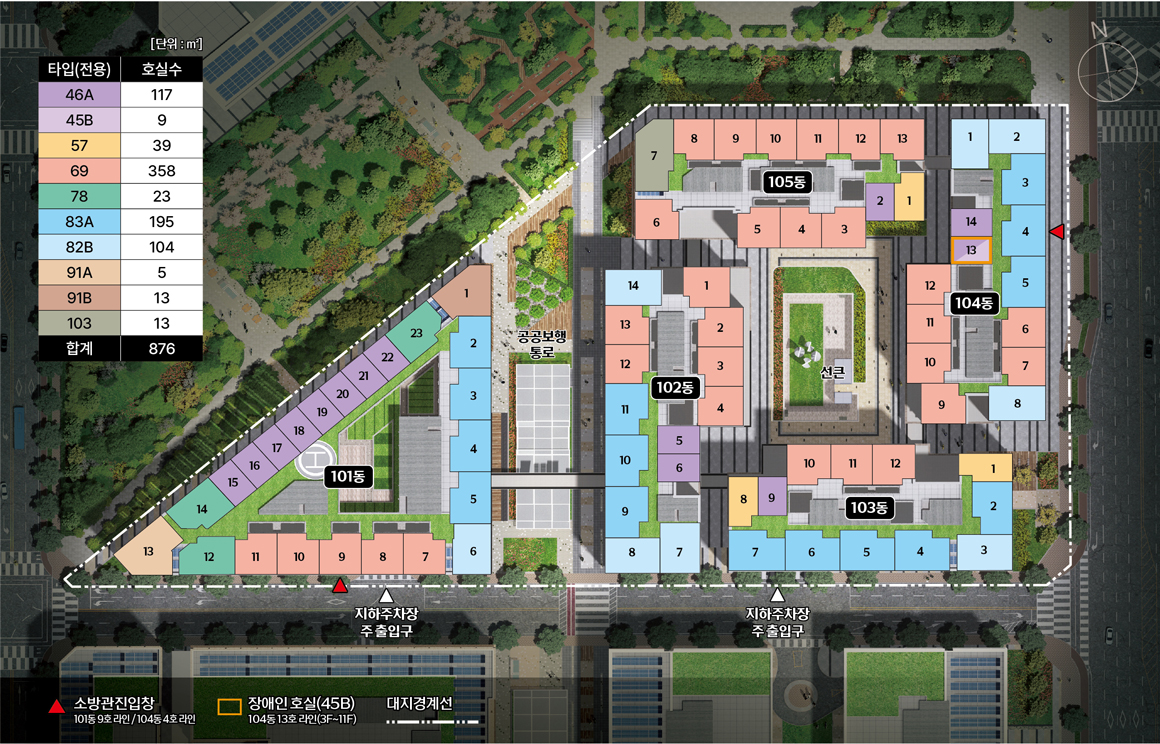 보행·휴식 친화 설계와 전용 커뮤니티