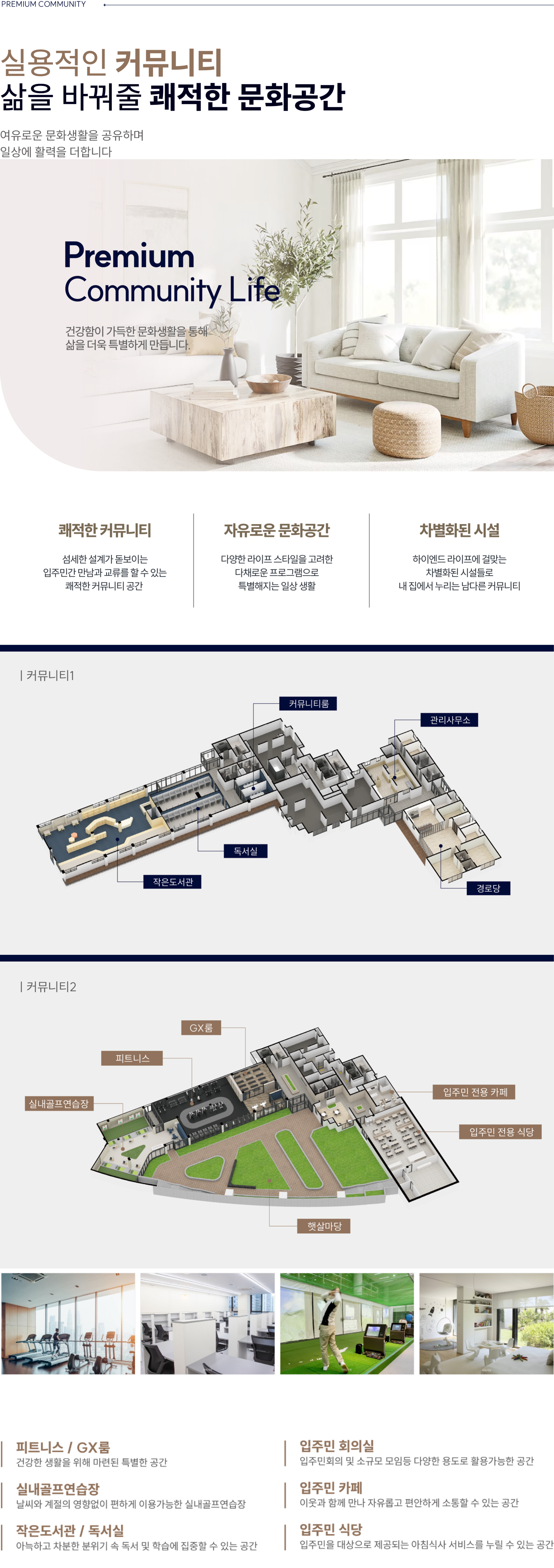 강화 지역의 기존 단지는 커뮤니티가 아쉬운 경우가 많았는데, 본 사업지는 피트니스·GX룸·실내골프연습장 같은 스포츠 시설부터 북카페·작은도서관·맘스 스테이션까지 일상 활용도가 높은 공간을 폭넓게 담았습니다. 하천과 이어지는 중앙광장은 주말 피크닉이 가능한 규모로 계획해 남녀노소 모두의 여가를 책임질 구성이죠. 두산위브 센트럴파크 강화의 커뮤니티는 “집 밖 첫 5분”을 풍성하게 바꿔줄 카드입니다.