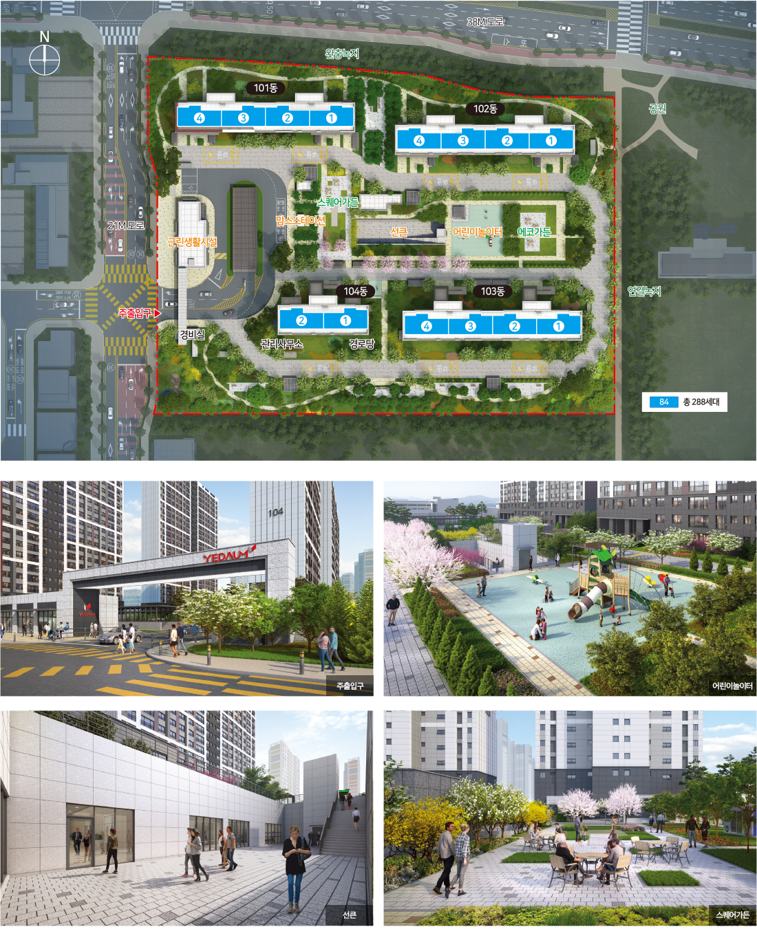 모든 세대가 정남향 위주 배치이며 동간 이격을 넓혀 조망과 사생활을 지켰습니다. 동측 인접 공원과 연결되는 보행축, 지상 차 없는 동선은 아이 있는 가정에 특히 유리합니다. 에코가든과 선큰가든, 어린이놀이터, 맘스스테이션 등 휴식과 안전을 함께 고려한 외부 공간 구성은 안성 아양지구 영무예다음을 ‘머물고 싶은 단지’로 만듭니다.