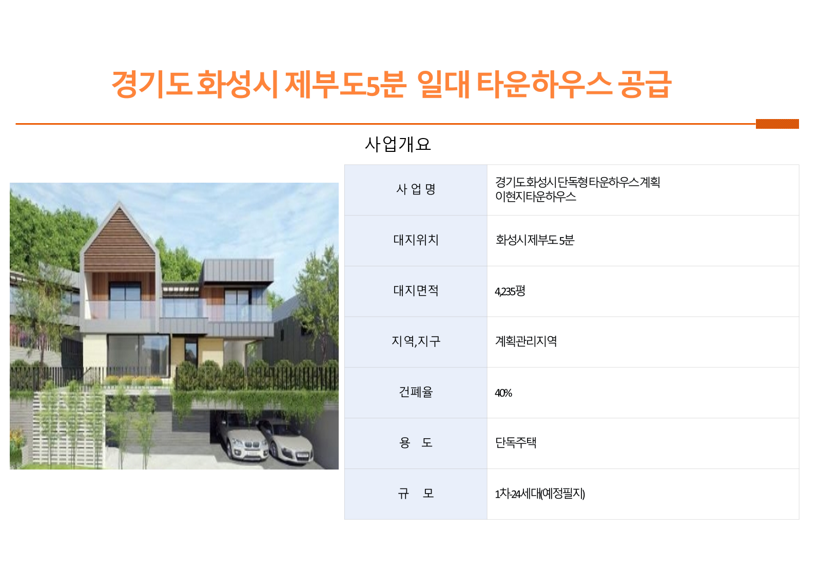 화성 타운하우스 주변에는 다양한 관광지와 편의시설이 위치해 있어 여가 생활을 즐기기에 최적의 환경을 제공하며 당 사업지 인근 개발호제로 높은지가 상승이 예상되며